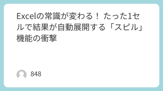 計算式待機型は古い!スピル機能を使えば動的配列で自動展開が可能Excelの「スピル機能 (Spill)」は、数式をたった一つのセルに入力するだけで、その結果が自動的に複数の隣接するセルに展開(あふれ出るように表示)される革新的な機能です。こ...